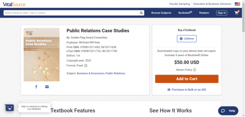 Public Relations Case Studies于2022年在全球發(fā)行并且上線(xiàn)全球最 大電子教材平臺(tái)VitalSource。該平臺(tái)為全球240多個(gè)國(guó)家和地區(qū)的數(shù)千家機(jī)構(gòu)和數(shù)百萬(wàn)學(xué)生提供在線(xiàn)教材和課程資料。