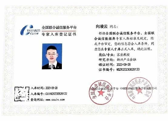 同時(shí),向凌云同志作為新興產(chǎn)業(yè)金融客座教授,入庫為全國聯(lián)合誠信服務(wù)平臺(tái)、全國聯(lián)合誠信數(shù)據(jù)庫專家。