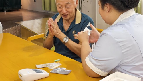 (養(yǎng)老院采用量點(diǎn)科技的檢測(cè)設(shè)備為老人進(jìn)行血栓風(fēng)險(xiǎn)檢測(cè))