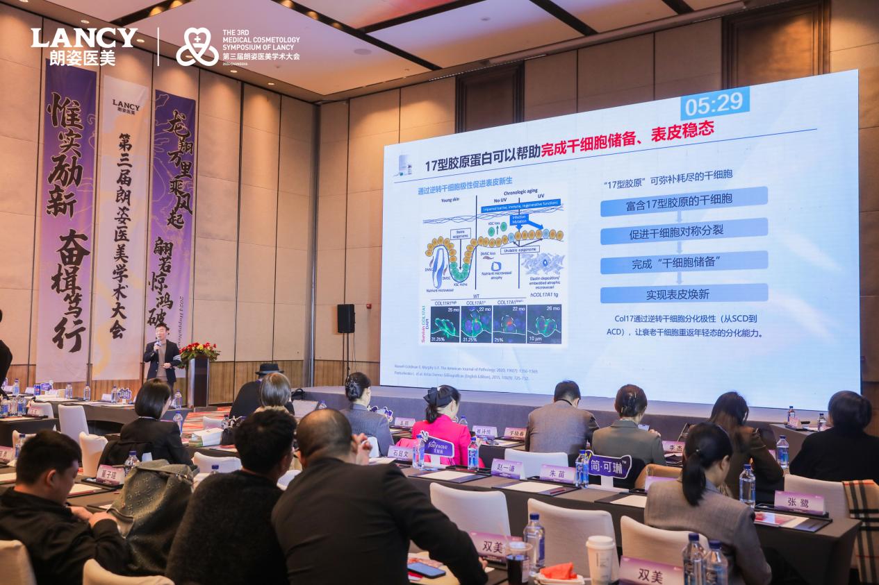 結合豐富臨床經(jīng)驗及案例,王師平博士向與會學者展示了,伊膚泉膠原小17對細紋淡化、膚色提亮、膚質細膩以及改善敏感具有非常顯著的作用。另外,王師平博士還分享了XVII型膠原與I型/III型膠原、射頻儀器以及超聲聯(lián)合治療的優(yōu)勢,為機構提供了治療新方案,也為求美者帶來全層抗衰新體驗。