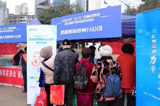 3月15日當(dāng)天,貴州分公司及下轄各機(jī)構(gòu)參加由各地監(jiān)管局及保險行業(yè)協(xié)會聯(lián)合舉辦的“3·15”金融消費者權(quán)益保護(hù)集中宣傳教育活動,通過懸掛宣傳條幅、擺放宣傳展架、發(fā)放宣傳折頁,向消費者普及保險理念以及保險知識?;顒蝇F(xiàn)場還以歌舞表演、相聲說教等消費者喜聞樂見的形式進(jìn)一步提升參與度,形成教育宣傳合力,幫助消費者守住“錢袋子”、筑牢“防詐墻”。