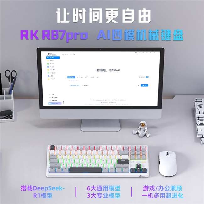 2025年4月6日,RK正式發(fā)布首款A(yù)I四模機(jī)械鍵盤。作為行業(yè)革新產(chǎn)品,R87PRO AI四模機(jī)械鍵盤以Deepseek-R1智能模型為核心,構(gòu)建起辦公智能生態(tài)全場景,突破傳統(tǒng)機(jī)械鍵盤局限,打破辦公與電競之間的壁壘,實(shí)現(xiàn)一機(jī)多用。