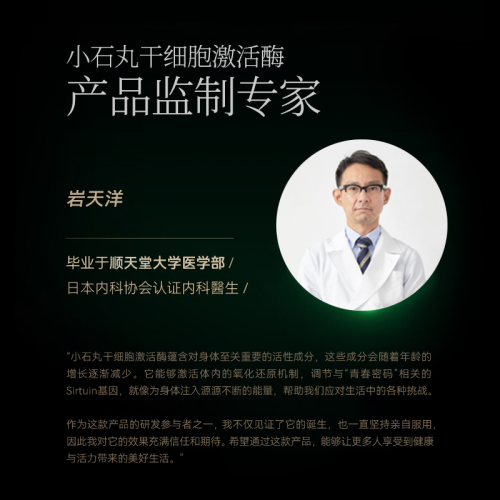 導(dǎo)語: 東京訊——近日,日本抗衰領(lǐng)域權(quán)威學(xué)者巖天洋教授,宣布出任“小石丸”品牌技術(shù)總監(jiān)制,引發(fā)業(yè)界高度關(guān)注。在接受專訪時,他不僅重申了對NMN市場亂象的批評,更首次從科學(xué)角度深入闡述了他監(jiān)制 “小石丸NMN靈芝精華” 的核心邏輯:“單一的高純度NMN是基礎(chǔ),但抗衰老的未來在于科學(xué)的復(fù)方協(xié)同。我在小石丸的研究中,看到了一個將前沿生物科技與東方草本智慧嚴(yán)謹(jǐn)結(jié)合的科學(xué)路徑?!?br/>